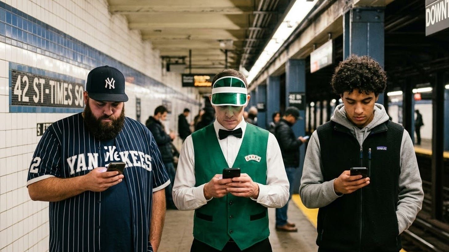 Searches for “Am I addicted to gambling?” spiked 25%, helpline calls from young men surged, and Americans wagered more than $160B on sports last year, up from $4.9B in 2017.