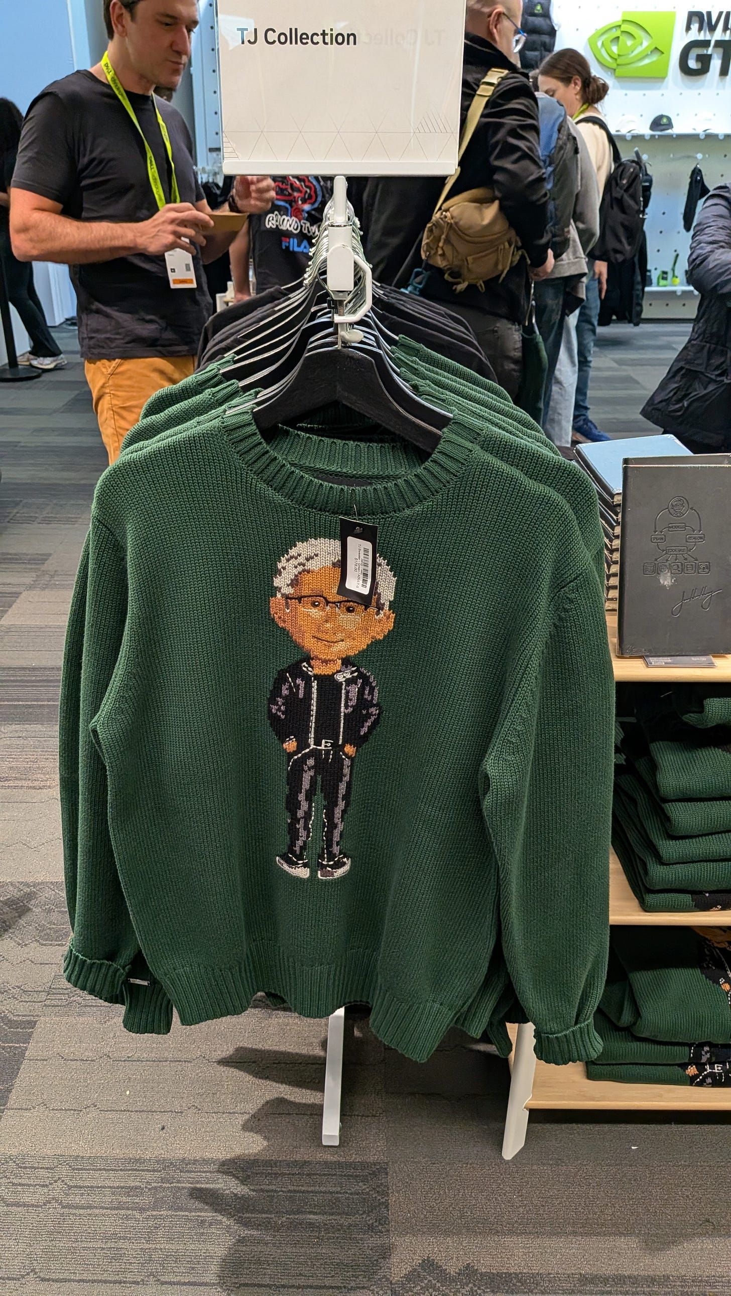 NVIDIA is selling a $178 knitted sweater at GTC featuring “Toy Jensen,” an AI avatar of the CEO, in a design that looks a lot like Ralph Lauren’s Polo Bear.(TechRadar)